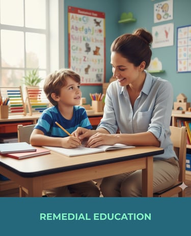 Remedial education provides specialized instruction for children who struggle with specific academic skills. Our educators use tailored teaching methods to help students overcome learning difficulties and achieve their educational potential.